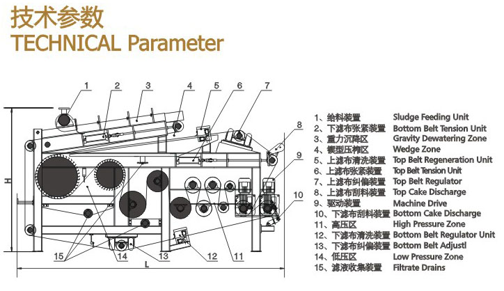 材料經進料器加水解酸化池劑流向水解酸化池劑摻雜器表明后流向引力預缺水情況處理現象段;材料在引力的影響下關閉程序過濾程序。經第二道預缺水情況處理現象的材料隨著上、下濾帶不停長期挪動(高中低濾帶由直流變頻調壓器有節制的齒輪傳動平臺驅動器),起首流向“鍥”形擠壓段;在“鍥”形擠壓中,其中每方向使材料平緩,其它其中每方向使材料飽受輕中度的壓力使材料缺水情況處理現象;另一方面流向“S”形擠壓段,在“S”形擠壓段中,材料被夾在高中低2層濾帶期間經或多或少個的區別規格的輥筒視品擠壓對材料構造剪截影響,使材料缺水情況處理現象。缺水情況處理現象后的濾餅經刮刀將濾餅刮落,而高中低濾布長期上移洗濯后上上下下流向下一種目標任務命輪。所有 應用程序配置回轉的長期關閉程序。