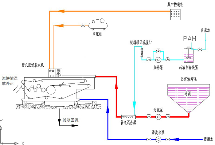 3、裝配三級離心分離潛水泵、凈化器、沖水器管等,濾帶凈化但是好,沖水器管支付簡捷,耗排水量少,且應該應用的排放水沖洗濾帶。
