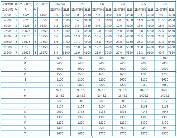 PBF型挪動盤式真空過濾機參數表:(局部規格)