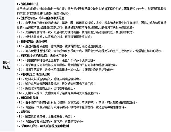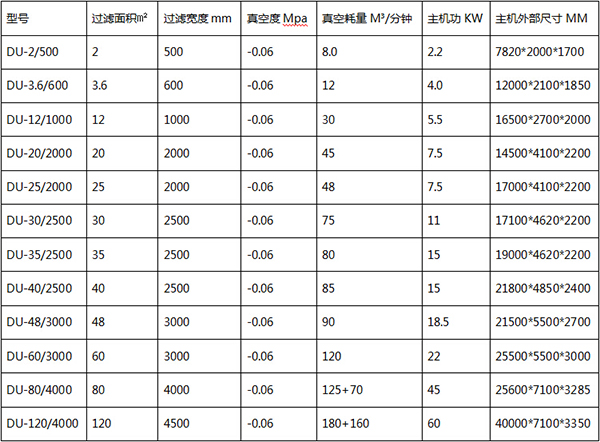 DU橡膠帶式真空過濾機參數表:(局部規格):